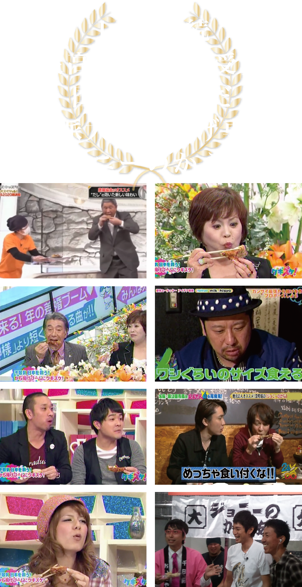 (社)日本唐揚協会主催のからあげグランプリにて、11年連続で最高金賞(7回)・金賞(4回)を受賞している大人気のからあげが自宅で食べれます!!TV・雑誌で話題のジョニーのからあげは揚げ物好きの方に限らず、食通や美食家の方々にも愛され続けています!!